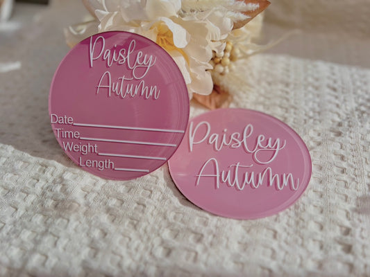 Custom Acrylic Birth Announcement Name Sign + Birth Statistic Sign